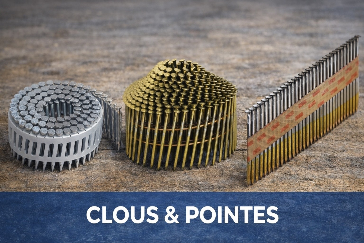 Offrant une large sélection de clous et pointes, disponibles en différentes formes, longueurs et types, nos produits répondent à tous vos besoins professionnels ou domestiques.