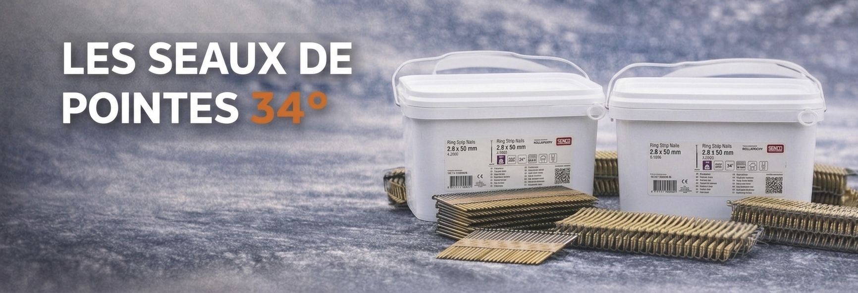 Gamme complète de clous pour cloueurs, adaptée à différents matériaux et applications.