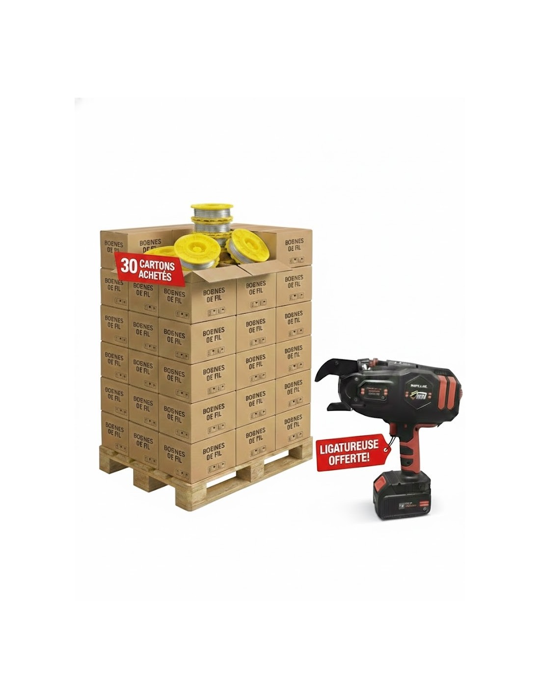 Optimisez la rentabilité de vos chantiers avec notre pack exclusif. En stockant vos consommables, vous recevez gratuitement l'outil indispensable pour lier vos armatures en un temps record.