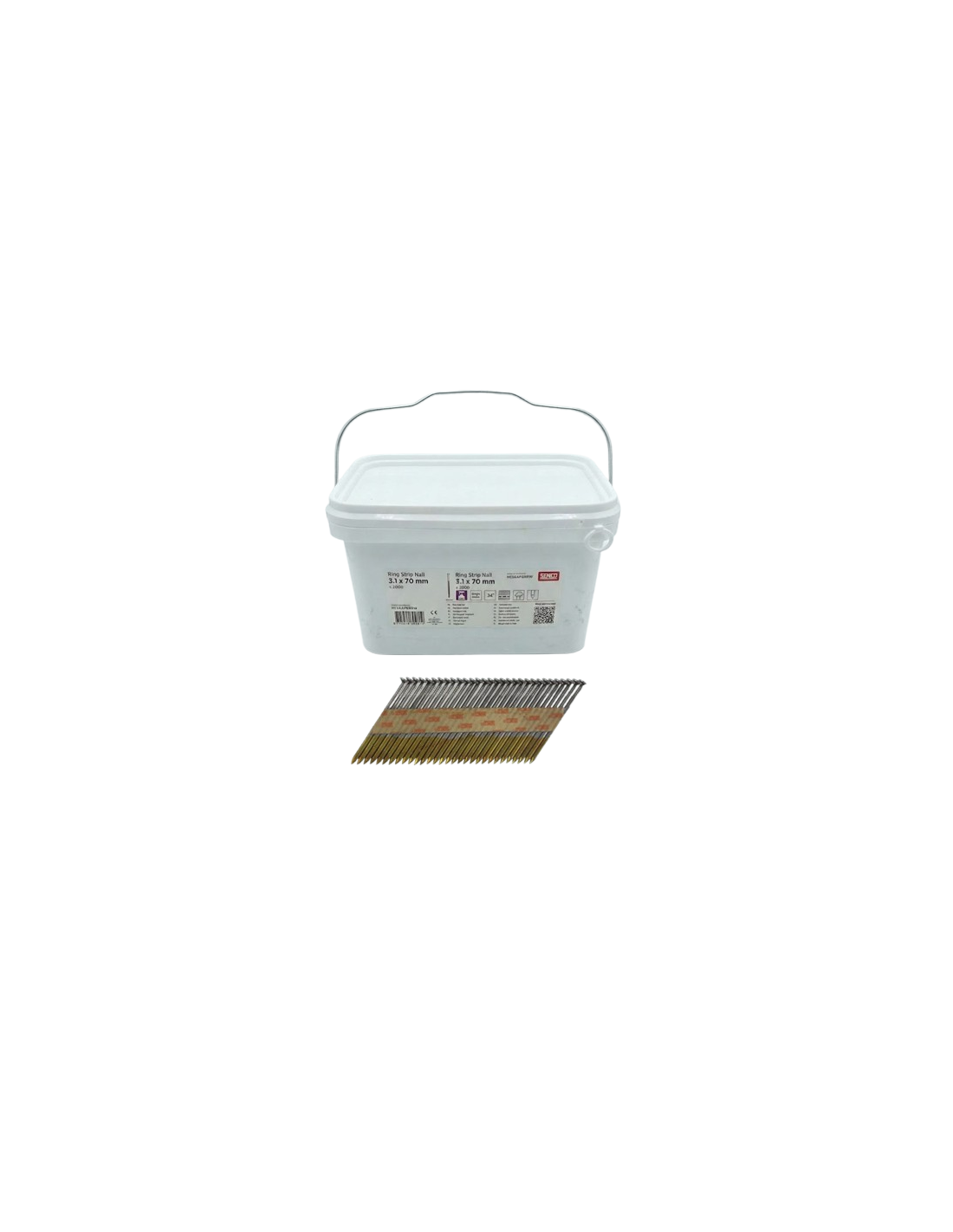 Seau de clous bande 34° Annelés - Acier - 3,1 x 70mm